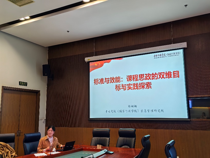 中央党校(国家行政学院)应急管理教研部郑姗姗老师以“标准与效能:课程思政的双维目标与实践探索”为题,结合研究生教育领域的探索经历,分享了如何通过创新教学实践引导学生深刻认识思想政治教育的核心价值与重要意义,同时阐述了思政教育在学生全面发展过程中所扮演的核心角色与不可替代的作用。